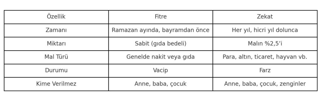 Fitre, Ramazan ayında verilmesi vacip olan bir sadakadır. Ramazan Bayramı’ndan önce, her Müslüman kendi adına ve bakmakla yükümlü olduğu kişiler adına fitre vermelidir. Amaç, yoksulların bayram sevincine ortak olmasını sağlamaktır.